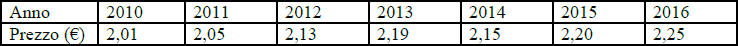 Il prezzo del bene X ha avuto il seguente andamento negli ultimi 7 anni: