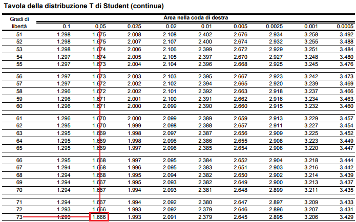 \[t_{\frac{\alpha}{2},\nu}=t_{\frac{0.1}{2},73}=t_{0.05,73}=1.666\]