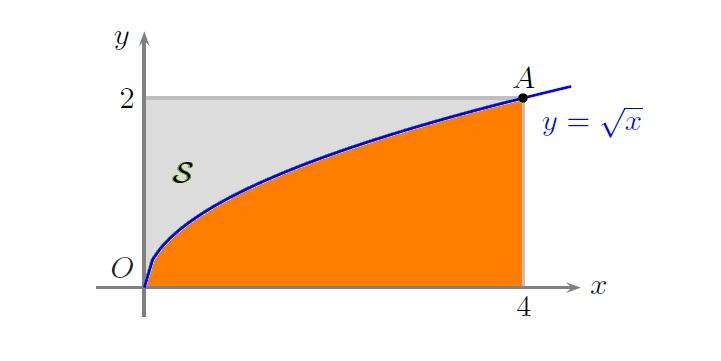 Si consideri la regione R delimitata da \[ y=\sqrt{x} \] dall’asse x (cioè y = 0) e dalla retta x = 4. L’integrale \[ \int_{0}^{4}2\pi x\left(\sqrt{x}\right)dx \] fornisce il volume del solido: