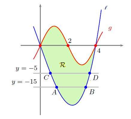 3. Ai bordi della piscina, nei punti di intersezione del contorno di R con le rette y=15 e y=5, l’architetto progetta di collocare dei fari per illuminare la superficie d’acqua. Si calcolino le ascisse di tali punti (è sufficiente un’approssimazione a meno di un’ordine di grandezza).