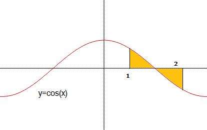 Si trovi l’area della regione delimitata dalla curva \[ y=cosx \] e dall’asse x da x=1 a x=2 radianti.