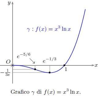 Un possibile grafico di \( \gamma : f(x) = x^3 \ln x\) è riportato in figura
