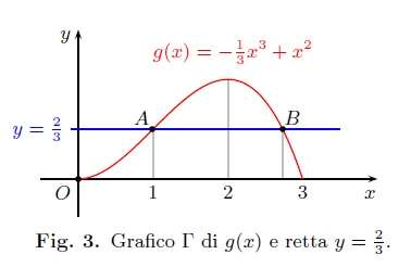 Per determinare le ascisse dei punti A e B di intersezione del grafico \(\Gamma \) con quello della retta di equazione \(y = \frac{2}{3}\) (fig. 3) va evidentemente risolta l’ equazione