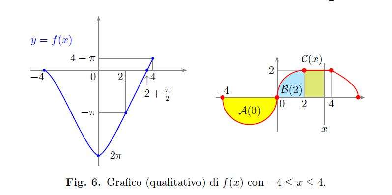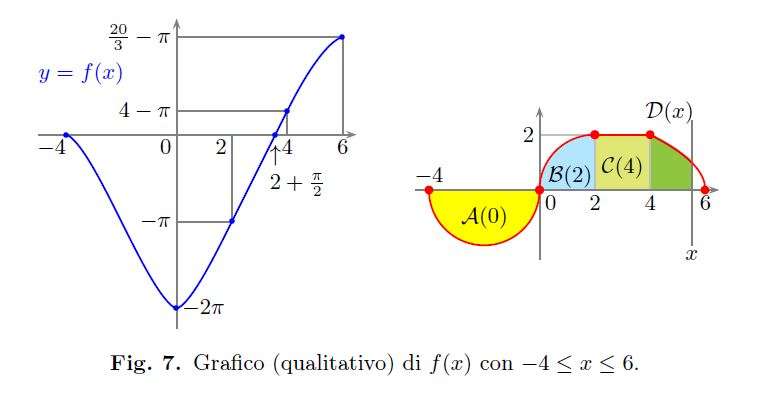 2. Posto \(f(x)=\int_{-4}^{x}g(t)dt\), si calcolino \(f(-4),f(0),f(1),f(2),f(4),f(6).\)\\