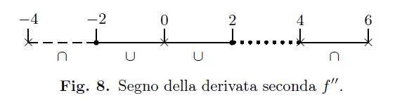 Infine \(f”(-2)=g'(-2)=0\) in quanto \(g\) possiede tangente orizzontale in \(x=-2\). Nei punti con \(x=-4,0,4,6\) la \(g\) non è derivabile e quindi non esiste \(f”\). \\