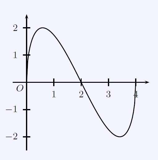 Sia \(f(x)=(2-x)\sqrt{4x-x^2}.\)\\