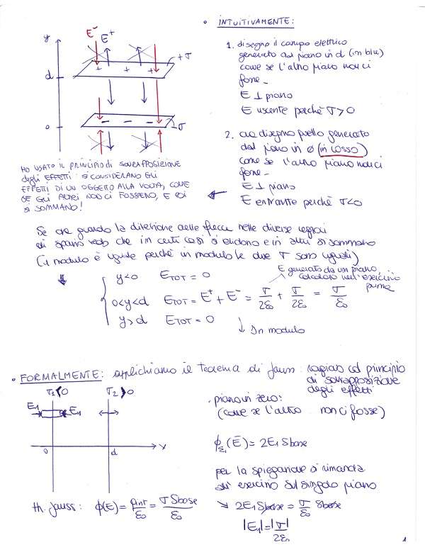 Elettrostatica 2 – Esercizio 2 Due piani infiniti sono posti parallelamente ad una distanza d. Un piano è carico con densità superficiale di carica uniforme e positiva pari a σ. L’altro con –σ. Calcolare il campo elettrostatico in tutto lo spazio.