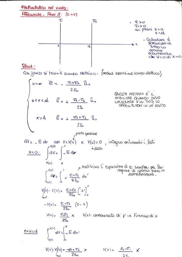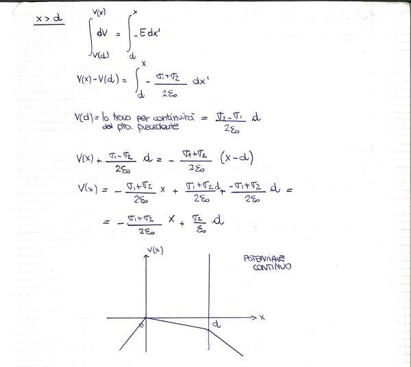Due piani paralleli posti a distanza d sono carichi con una densità superficiale di carica positiva pari a σ1 e σ2. Calcolare il potenziale in tutto lo spazio assumendo che V=0 in x=0.