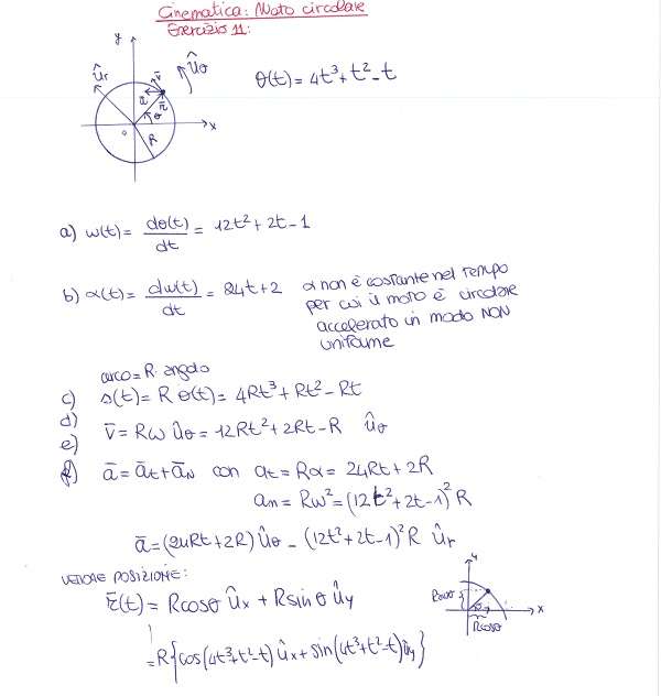 Un punto materiale si sta muovendo su una circonferenza di raggio R. La sua posizione lungo la circonferenza è data, nel tempo, dal seguente angolo formato dal raggio vettore e l’asse x: