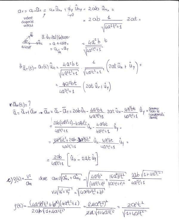 b) Ricavare l’andamento nel tempo del vettore accelerazione tangenziale aT e di quello accelerazione normale aN in modulo direzione e verso.