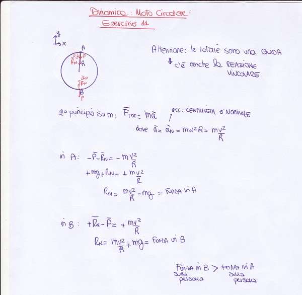 Ora, nel punto più basso si ha la max velocità raggiungibile e quindi la max E. cinetica ottenibile, e avendo a disposizione tutta quest’energia di movimento il carrello tende a sfruttarla per continuare la sua corsa di moto circolare a causa della reazione vincolare che che si viene a creare quando due corpi si toccano (carrello e binari) costringendo il carrello a percorrere i binari e facendolo risalire fino ad arrivare al punto max dove L’energia Cinetica è quasi nulla e quindi anche la velocità e quindi anche l’unica cosa che permetteva al carrello di “toccare” i binari e perciò anche la Reazione vincolare che infatti risulterà piccolissima ;)