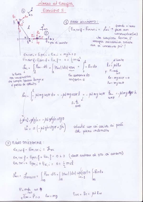 Se il corpo rotola senza strisciare non si ha dissipazione di energia meccanica a causa dell’attrito. Si può quindi applicare la conservazione dell’energia meccanica totale; Ei=mgh, mentre Ef (in fondo al piano inclinato)= 1/2mv^2 + 1/2Iw^2 (questo secondo termine è l’energia di rotolamento della pallina data l’inerzia di essa);