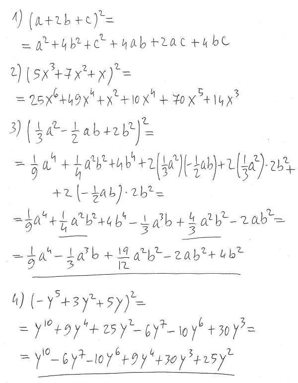 Calcolare i seguenti quadrati di trinomio: