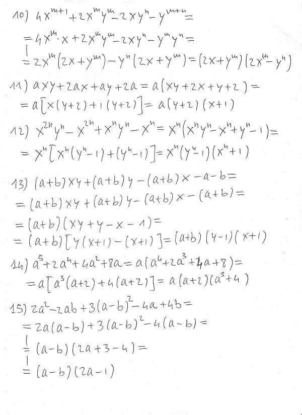 Al numero 15 manca (a-b) e il risultato finale sarebbe (a-b)(3a+b-1)