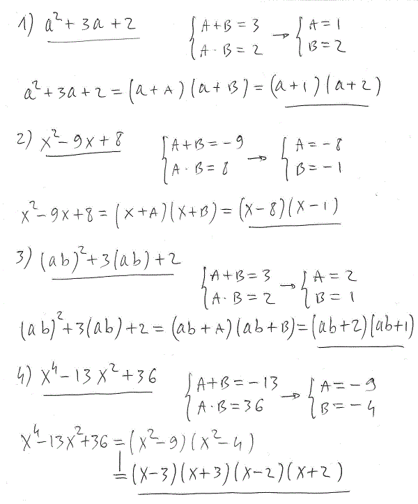 Scomporre in fattori i seguenti trinomi particolari: