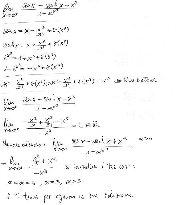 Svolgendo il secondo esercizio, mi risulta diverso perché nel limite per x che tende a 0, domina la x con esponente minore! Quindi:
