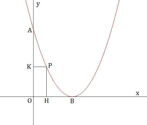 Abbiamo che \[ \overline{PK}=x_{P}=x \] \[ \overline{PH}=y_{P}=y \] Sapendo che \[ y=2x^{2}-4x+2 \] otteniamo la somma delle distanze in funzione della sola variabile x: \[ f=\overline{PH}+\overline{PK} \] \[ f\left(x\right)=2x^{2}-4x+2+x \] \[ f\left(x\right)=2x^{2}-3x+2 \] Calcoliamo la derivata: \[ f’\left(x\right)=4x-3 \] Studiamone il segno: \[ f’\left(x\right)\geq0\rightarrow x\geq\frac{3}{4} \] Abbiamo trovato l’intervallo di x per il quale la derivata della funzione è positiva. La funzione f(x) è crescente per x maggiore di 3/4, decrescente per x minore di 3/4, ha quindi un minimo per \[ x_{P}=\frac{3}{4}\rightarrow y_{P}=\frac{1}{8} \] e il punto P avrà quindi coordinate \[ P\left(\frac{3}{4};\frac{1}{8}\right) \]