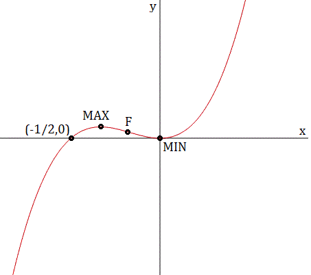 $\begin{aligned} & f\left(-\frac{1}{3}\right)=\frac{2}{27} \rightarrow\left(-\frac{1}{3}, \frac{2}{27}\right) M A X \\ & f(0)=0 \rightarrow(0,0) M I N\end{aligned}$