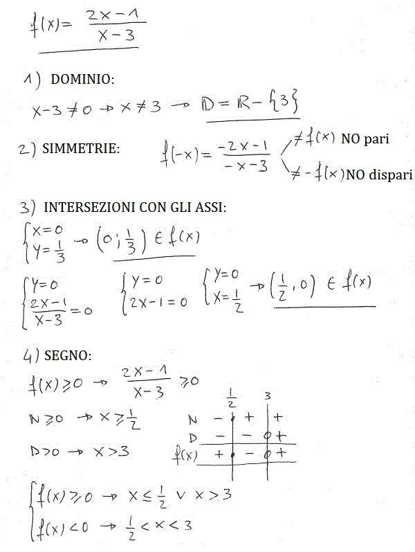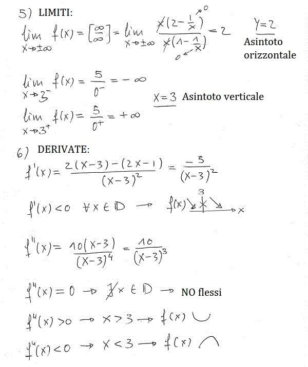 ciao albert nn mi trovo in un unico punto . Perchè poni x>3 e x <3 nella concavità e nella convessità?????? inoltre non consideri il -5 (numeratore) perchè nn vi sono presenti delle x.