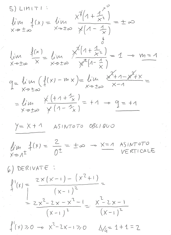 ciao albert!..in base a che cosa svolgi il limite per ricavare l’asintoto verticale?…scusa la mia ignoranza, ma io dopo aver ricavato l’obliquo sarei passato direttamente alle derivate…non capisco in base a cosa devo ricavare l’asintoto verticale o meno…