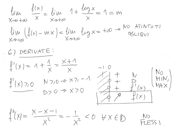 perchè per x–>+inf logx / x =0 (puoi farlo con de l’hopital) quindi f(x)/x= 1 + logx / x = 1+0 = 1