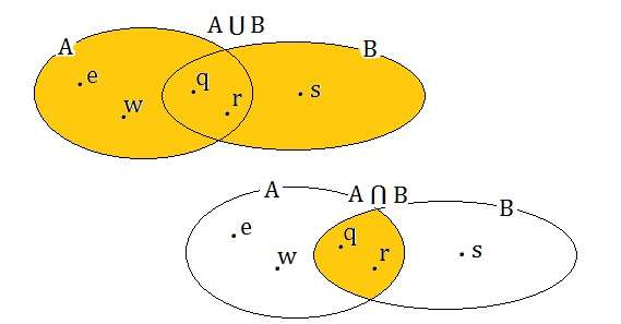 A U B, A ∩ B.