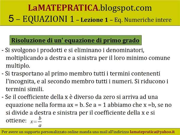 Le equazioni di primo grado si dicono equazioni lineari, e possono essere scritte nella forma: