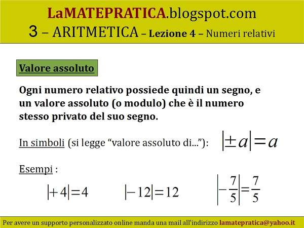 Valore assolutoOgni numero relativo possiede quindi un segno, e un valore assoluto (o modulo) che è il numero stesso privato del suo segno. Rispondi